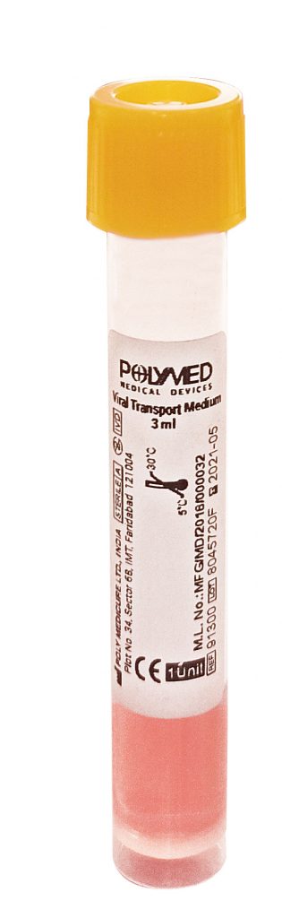 Polymed Viral Lysis Transport Medium helps to collect and transport COVID 19 viruses in the lysed form to the laboratory for testing.